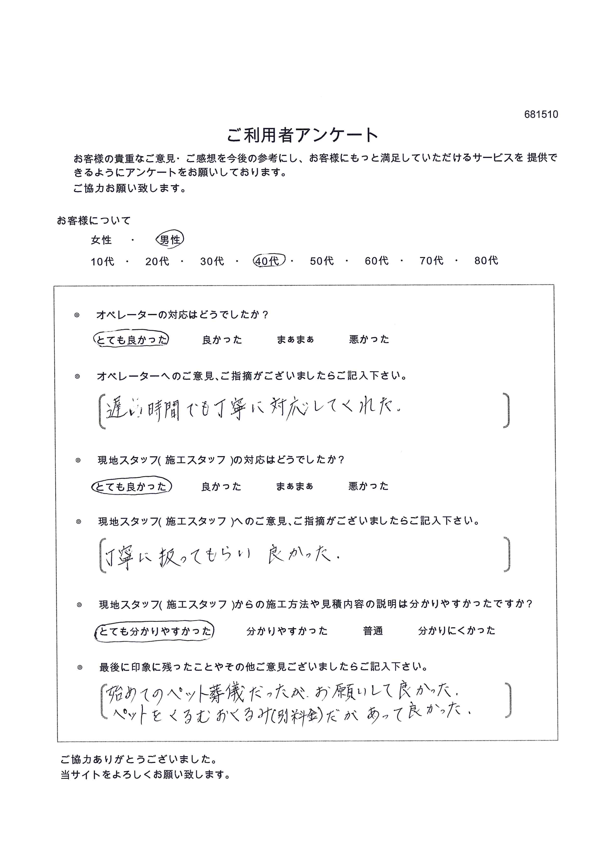 >始めてのペット葬儀だったが、お願いして良かった。